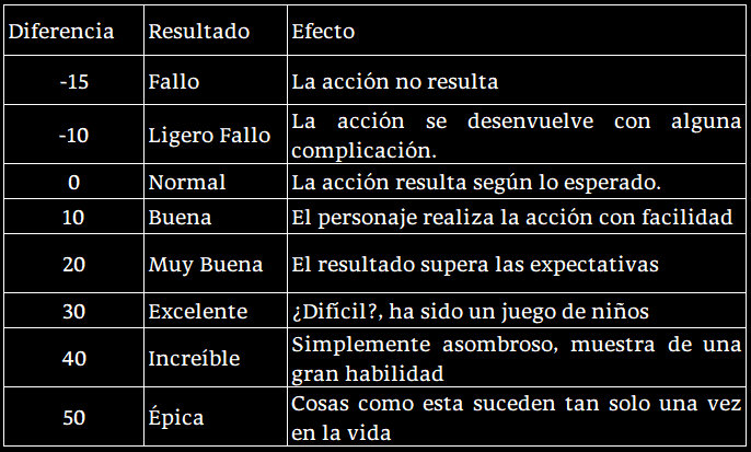 Por tanto el resultado de la tirada es de cuatro éxitos, mas que suficientes para superarla. Gracias a esto el personaje resiste la tentación de lanzarse a beber de la charca antes de comprobar si el agua será o no potable.